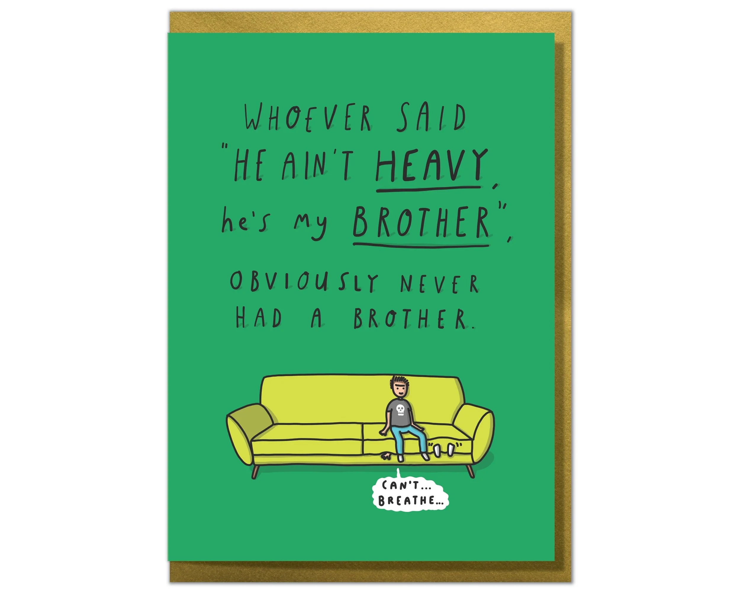 Send your brother happy thoughts on his birthday, while also reminding him of the deep and lasting psychological trauma he's caused you over the years. It measures 110mm x 150mm and is packed in a sealed cello-bag with a gorgeous gold envelope. Designed and printed in the UK using thick, high quality card from sustainable sources. Blank inside for your own message.