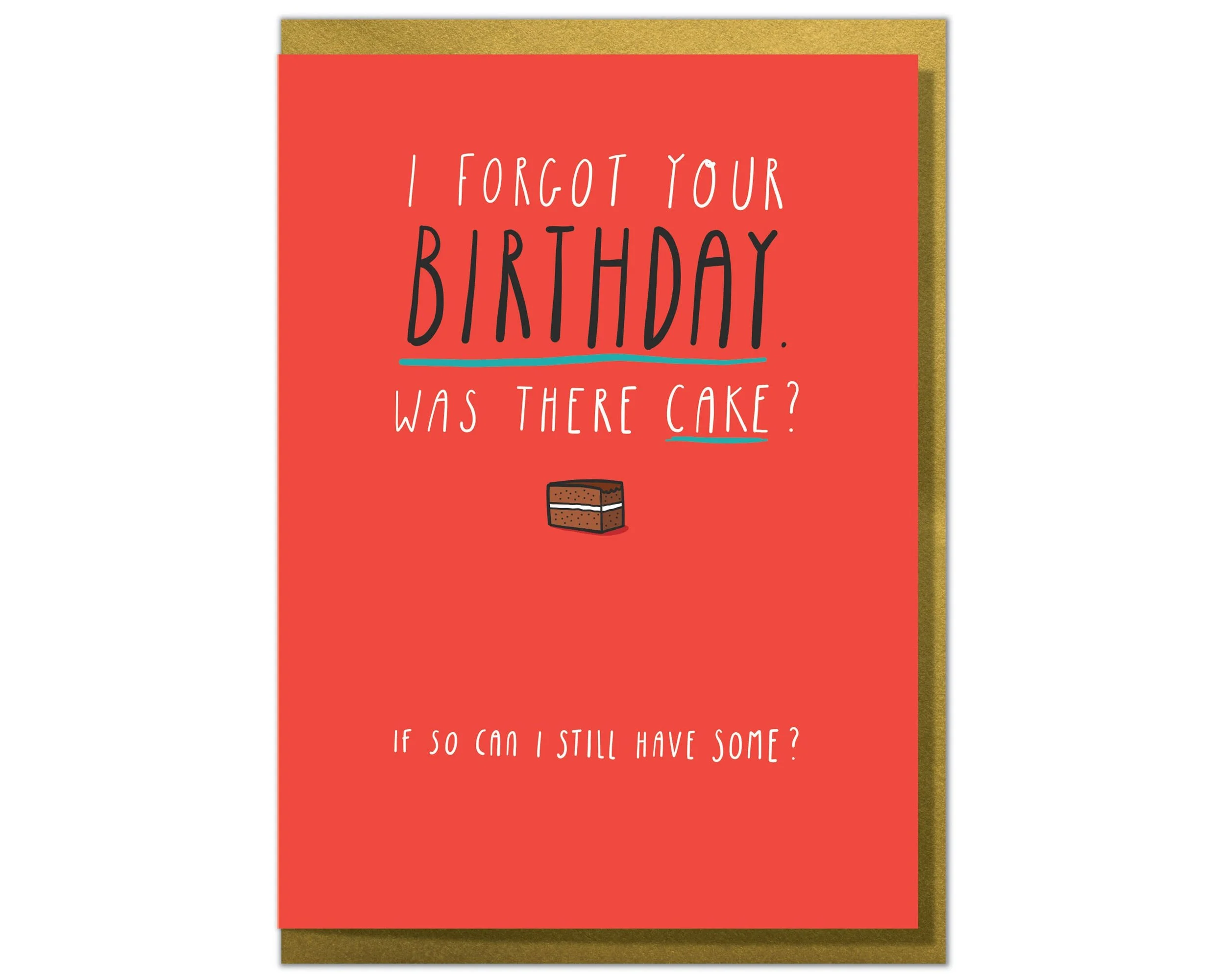 I Forgot Your Birthday, was There Cake? Funny Belated Birthday Card