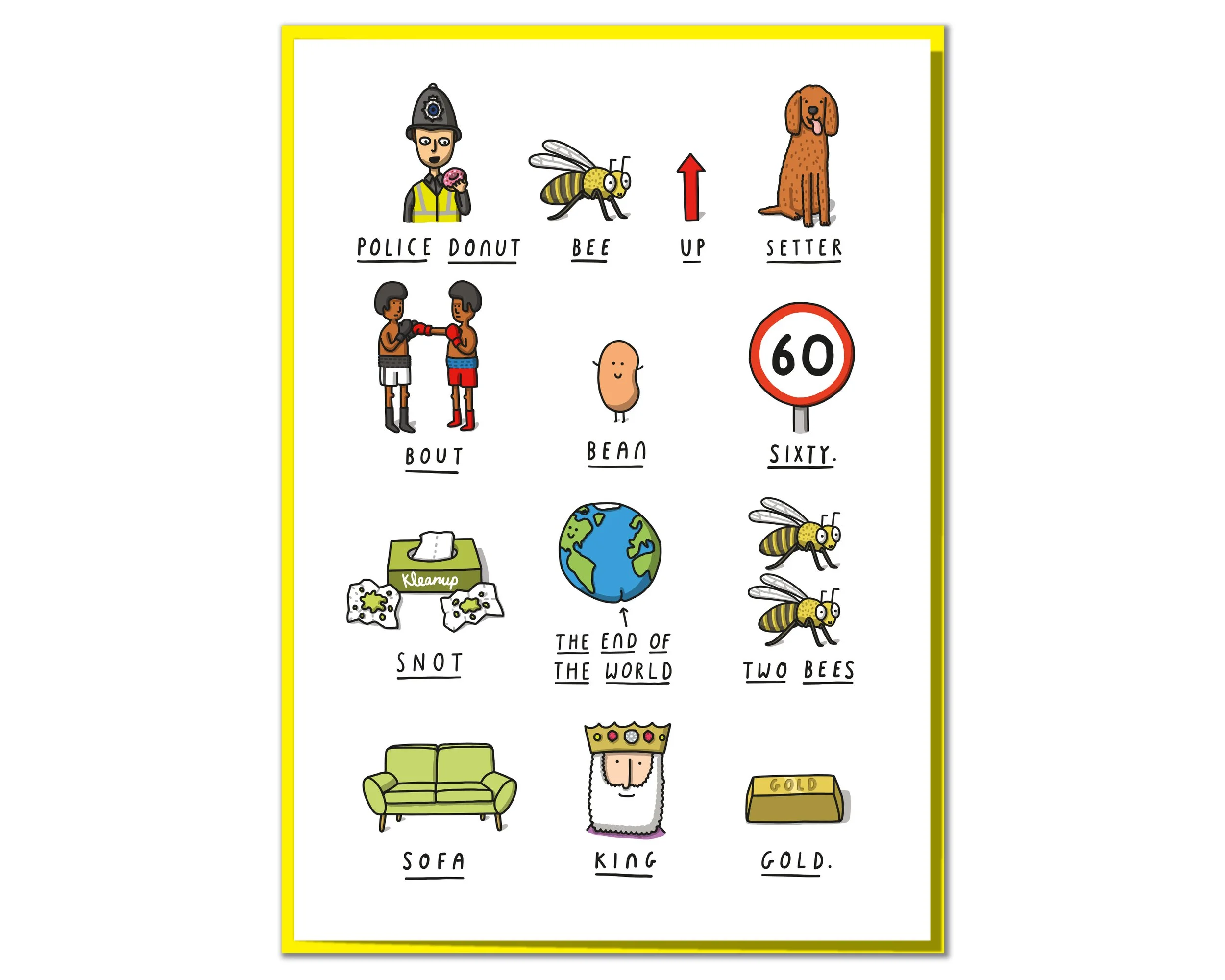 This 60th birthday card is a whole lot of pun! It measures 120mm x 170mm and is supplied with a bright yellow envelope. Designed and printed in the UK using high quality card from responsible sources. Blank inside for your own message.